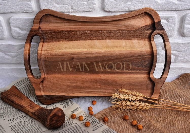 سینی چوب گردو مدل کمرباریک دسته دار کد skb۲۷۴۲