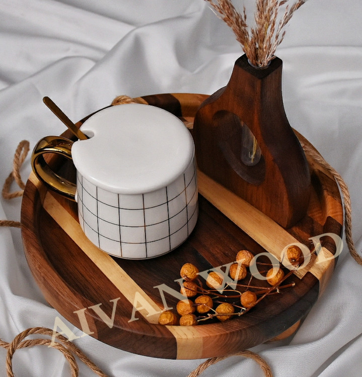 اندازه: سینی قطر ۲۵ سانت ضخامت ۳سانت پایه ها ارتفاع ۶ سانتی متر